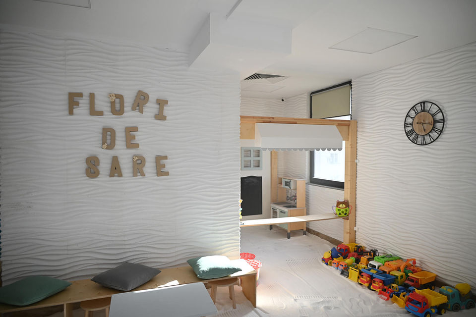 Locurile de joaca pentru copii sunt inspirate din educatia Montessori. Am amenajat un spatiu dedicat terapiei senzoriale cu lumini colorate, benefic in special pentru copiii cu probleme neurologice, ajutand la echilibrarea psihica si recreere.
